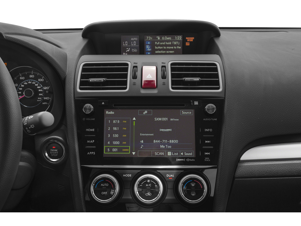 EYESIGHT & NAVIGATION SYSTEM Touch Screen GPS Navigation System, SD card map, 6.1 LCD navigation screen, SiriusXM NavTraffic (subscription required) and voice activated controls and navigation, EyeSight System, adaptive cruise control, low speed pre-collision braking control and vehicle lane departure warning, Radio: HD AM/FM Stereo w/Single CD Player, MP3/WMA file capability, Radio Broadcast Data System (RBDS), Bluetooth® audio streaming connectivity, Bluetooth® hands-free phone connectivity, iPod control capability, iTunes tagging capability, USB port, SMS text messaging capability, SiriusXM satellite radio (subscription required), 3.5mm auxiliary input jack, 8 speakers and roof mounted audio and satellite antenna, Aha Infotainment, Smartphone Integration.