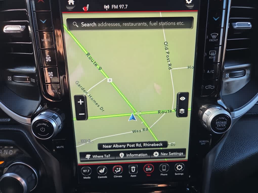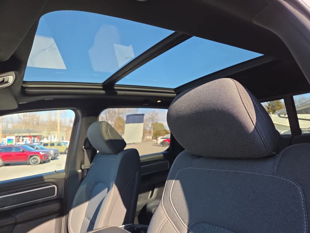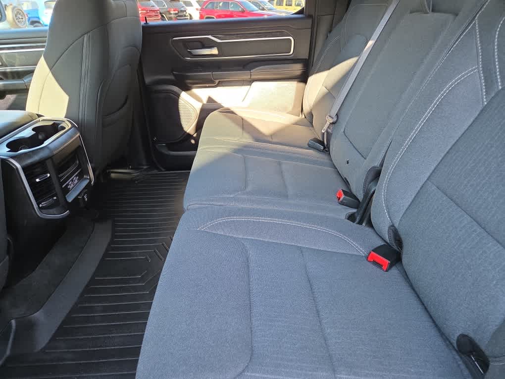 BIG HORN LEVEL 2 EQUIPMENT GROUP SiriusXM Radio Service, Rear Window Defroster, ParkSense Front/Rear Park Assist w/Stop, Rear View Auto Dim Mirror, Power Adjustable Pedals, For More Info, Call 800-643-2112, Rear Power Sliding Window, Rear Dome w/On/Off Switch Lamp, Glove Box Lamp, Power 4-Way Driver Lumbar Adjust, 115V Auxiliary Rear Power Outlet, Media Hub w/2 Charge Only USBs, Power 8-Way Driver Seat, Auto Dim Exterior Driver Mirror, Heated Front Seats, Heated Steering Wheel, Foam Bottle Insert (Door Trim Panel), Class IV Receiver Hitch, Security Alarm, Black Premium Power Mirrors, Big Horn IP Badge, Remote Start System, SiriusXM Satellite Radio, Exterior Mirrors w/Supplemental Signals, Exterior Mirrors Courtesy Lamps, Air Conditioning ATC w/Dual Zone Control, 115V Auxiliary Power, ENGINE: 5.7L V8 HEMI MDS VVT ETORQUE Active Noise Control System, Heavy Duty Engine Cooling, GVWR: 7,100 lbs, Dual Rear Exhaust w/Bright Tips, HEMI Badge, 23 Gallon Fuel Tank, 18 Aluminum Spare Wheel, NIGHT EDITION Tires: 275/55R20 OWL All Season, Accent Color Premium Power Mirrors, Exterior Mirrors w/Supplemental Signals, Black Headlamp Bezels, Exterior Mirrors Courtesy Lamps, Auto Dim Exterior Driver Mirror, Black Exterior Truck Badging, Anti-Spin Differential Rear Axle, Wheels: 20 x 9.0 Premium Paint/Polished, Exterior Mirrors w/Memory, Black Interior Accents, Dual Exhaust w/Black Tips, Power-Folding Mirrors, Body Color Front Bumper, Body Color Rear Bumper w/Step Pads, Black Painted Exterior Mirrors Caps, RADIO: UCONNECT 12 W/NAVIGATION Google Android Auto®, SiriusXM Radio Service, SiriusXM Traffic Plus, SiriusXM Satellite Radio, USB Host Flip, Disassociated Touchscreen Display, HD Radio, For Details, Visit DriveUconnect.com, Integrated Center Stack Radio, For More Info, Call 800-643-2112, 1-Yr SiriusXM Guardian Trial, 12 Touchscreen Display, GPS Navigation, SiriusXM Travel Link, 4G LTE Wi-Fi Hot Spot, SiriusXM w/360L, Apple CarPlay®, LED Footwell Lighting, DUAL-PANE PANORAMIC SUNROOF Premium Overhead Console, Dome Dual LED Reading Lamp, Overhead LED Lamps, BED UTILITY GROUP MOPAR Spray In Bedliner, MOPAR 4 Adjustable Cargo Tie-Down Hooks, Pick-Up Box Lighting, MOPAR Deployable Bed Step, MOPAR BLACK TUBULAR SIDE STEPS, 9 AMPLIFIED SPEAKERS W/SUBWOOFER, LEVEL 1 SAFETY GROUP Advanced Brake Assist, Cluster 3.5 TFT Color Display, Rear View Auto Dim Mirror, Pedestrian Emergency Braking, Full Speed Forward Collision Warning Plus, Lane Keep Assist, TRANSMISSION: 8-SPEED AUTOMATIC (8HP75), BLACK, DELUXE CLOTH BUCKET SEATS Power 8-Way Driver Seat, Center Console Parts Module, Bucket Seats, Manual Adjust 4-Way Front Passenger Seat, Full Length Floor Console, Power 4-Way Driver Lumbar Adjust.