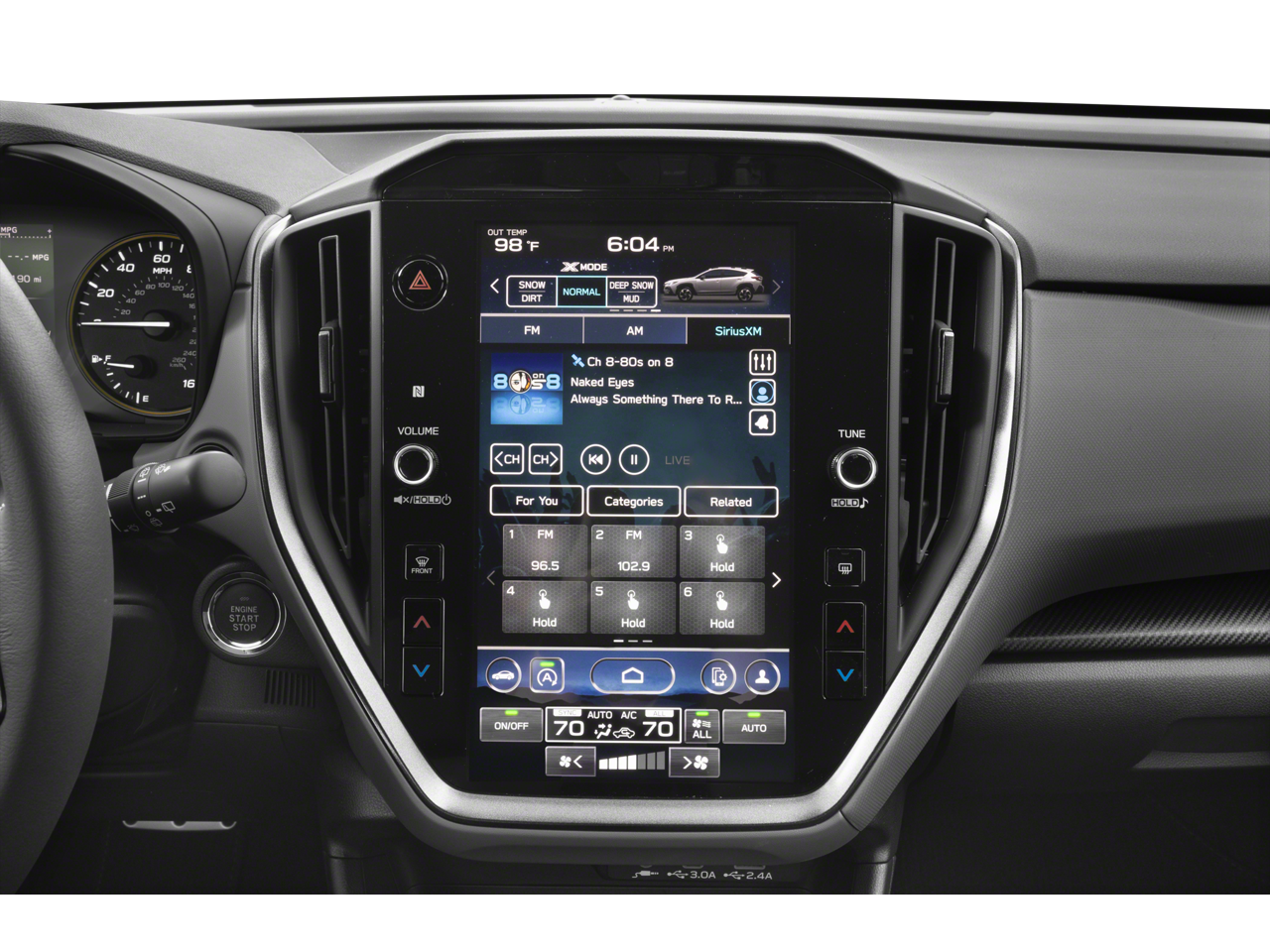- Radio: Subaru 11.6" Multimedia Plus System -inc: AM/FM stereo, HD Radio, multi-touch gesture high resolution display screen, voice activated controls, Bluetooth® audio streaming and hands-free phone connectivity, Bluetooth® hands-free SMS text messaging connectivity, iPod control capability, SiriusXM w/360L (4 months free trial included/subscription required after), SiriusXM Travel Link (4 months free trial included/subscription required after), smartphone integration: Android Auto and Apple CarPlay w/full screen view and wireless connection, USB and Over The Air (OTA) audio system update, steering wheel audio system and Bluetooth® control switches, 6 speakers (2 dash panel tweeter, 2 front door and 2 rear door), illuminated 3.5mm auxiliary input jack, illuminated front USB A and C input/charge ports and illuminated rear USB A and C charge ports